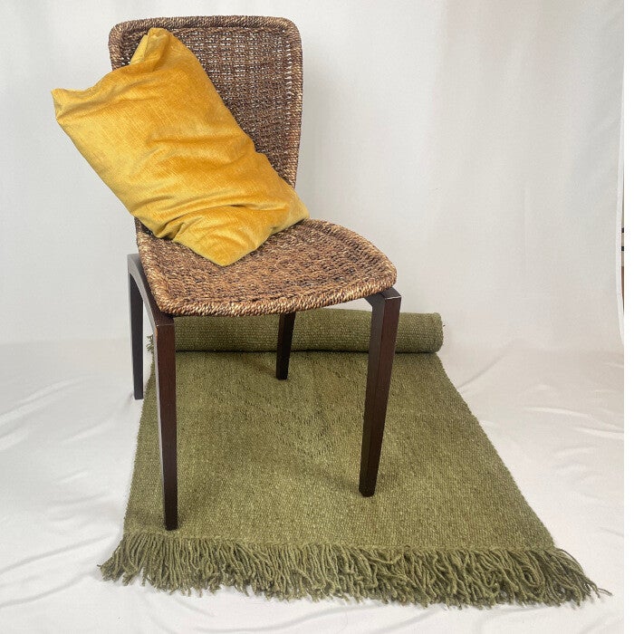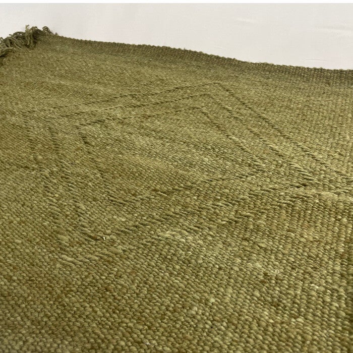 Très joli tapis Mapuche de teinture naturelle vert kaki, orné d'un losange central.