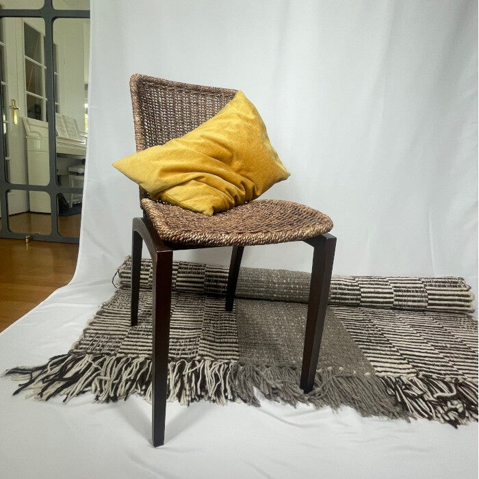 Tapis fait main sur métier à tisser par des artisanes de Quinamavida. Modèle disponible en deux tonalités (attention, dimensions différentes).Tissage graphique sur une fibre rustique au rendu très design.